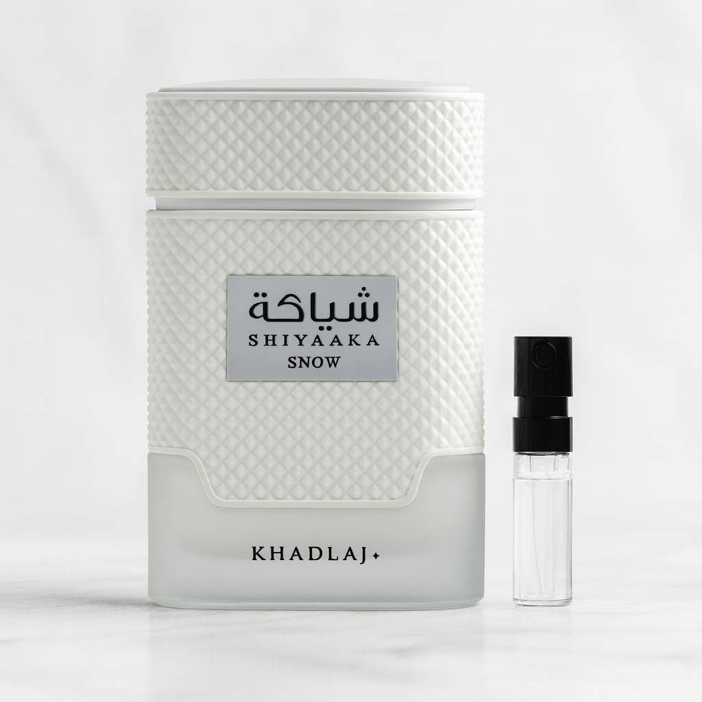 Shiyaaka Snow – Special Edition by Khadlaj is a clean, bright unisex fragrance that blends fresh citrus, soft florals and smooth woody spice. It delivers an icy, uplifting opening that settles into a warm, elegant base. Available in 2 ml, 5 ml and 10 ml decants in Ireland at decants.ie.